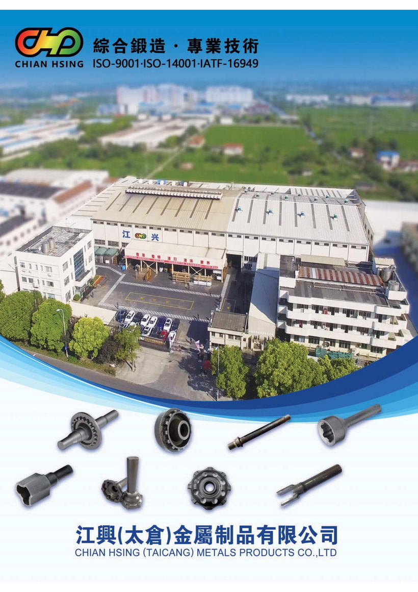 江興鍛壓工業股份有限公司自西元1971年創立以來,秉持著「顧客滿意、同仁樂意、經營得意、永續經營」之經營理念,不斷開發綜合鍛造之技術,使本公司所生產的鍛品更優良、更精密、更能減少切削加工,使鍛品更臻于理想。于1997年在江蘇省太倉市設立江興(太倉)金屬制品有限公司,以及2012年設立江興(淮安)汽車部件有限公司,延續臺灣總部的經營理念和專業技能,持續在國內發展并精進冷溫熱綜合鍛造技術。