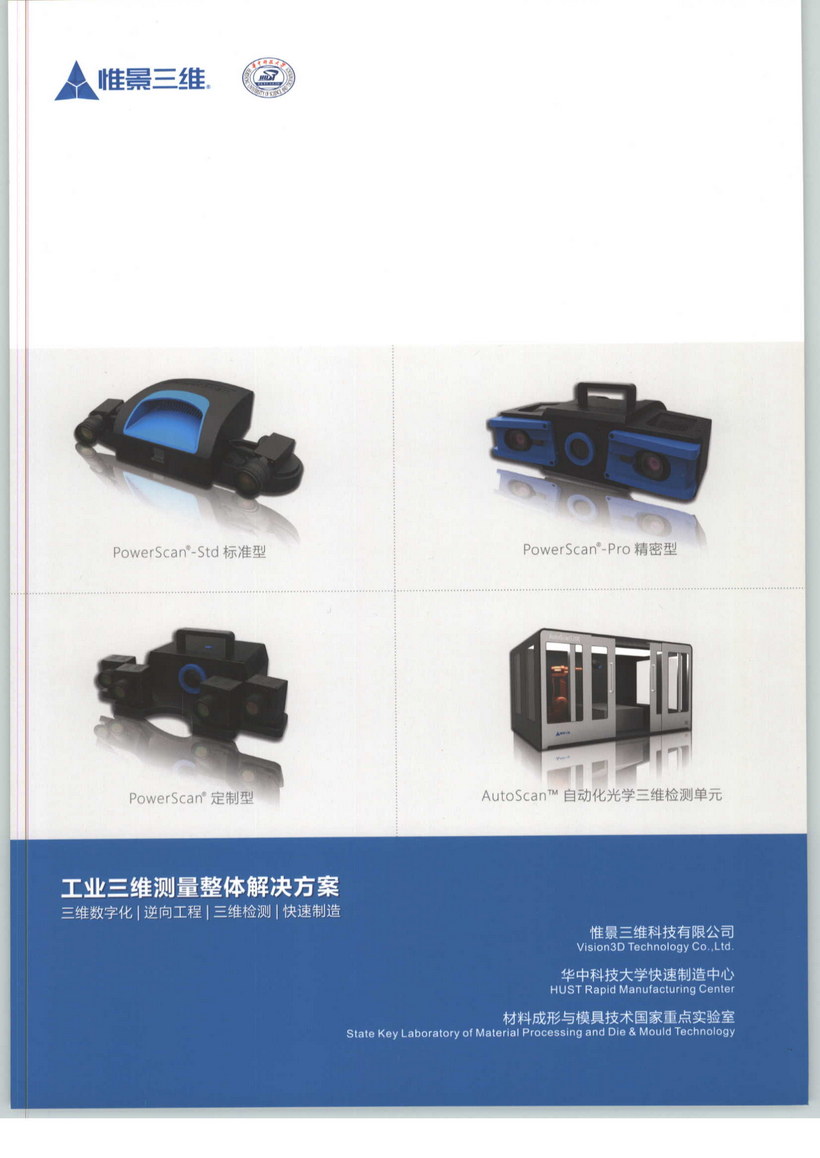 惟景三維科技有限公司是一家提供專業三維數字化技術綜合解決方案的高科技企業。公司以華中科技大學快速制造中心為技術依托,長期從事三維測量技術的研發、生產、銷售和服務。研發團隊在國家自然科學基金、國家科技重大專項、國家科技支撐計劃、歐盟框架七項目和湖北省重大科技創新計劃等多項國家與省部級科研項目的資助下,成功研發了具有自主知識產權的PowerScan*系列三維形貌測量系統和PowerTrack?系列動態物體三維變形和應變測量系統,并已在航空航天、汽車制造、能源電力、文創藝術和教育培訓等多個行業得到長期穩定的應用。相關成果獲得中國機械工業科學技術一等獎2項、教育部科技進步一等獎1項、日內瓦國際發明展覽會金獎2項。