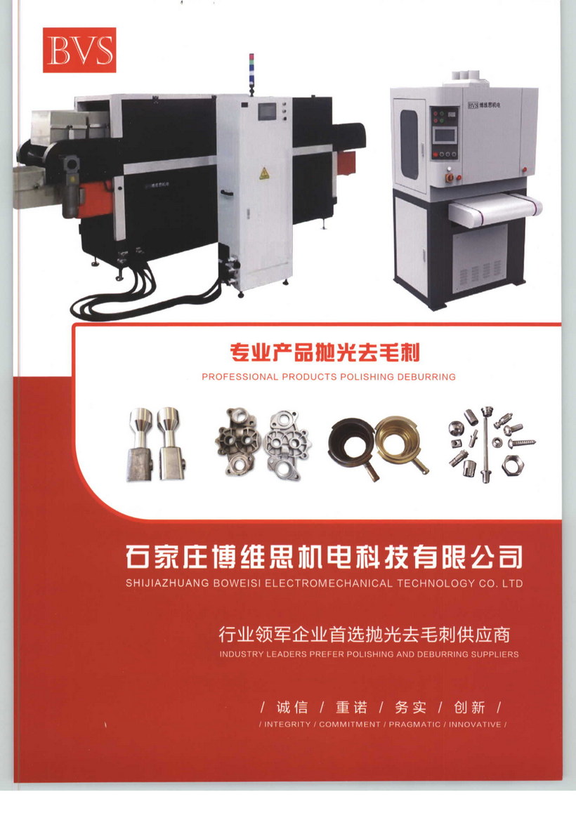寧波博維思機(jī)電科技有限公司,專致產(chǎn)品去毛刺、產(chǎn)品拋光、產(chǎn)品清洗、自動(dòng)化相關(guān)領(lǐng)域解決方案、主打設(shè)備有平面金屬砂光去毛刺機(jī)、高能磁磁針拋光機(jī)、高能磁磁針研磨去毛刺機(jī)、自動(dòng)清洗機(jī)以及相關(guān)非標(biāo)自動(dòng)化設(shè)備。地處長(zhǎng)三角內(nèi)最具活力的工業(yè)明星城市之一浙江省寧波市。位于浙江省寧波鄞州區(qū),距離寧波國(guó)際機(jī)場(chǎng)5公里,港口15公里,緊靠甬金高速入口處,交通十分便利,工業(yè)發(fā)達(dá)。我公司是一家專業(yè)從事高品質(zhì)去毛刺機(jī)、拋光機(jī)、清洗機(jī)、自動(dòng)化設(shè)備等研發(fā)生產(chǎn)及制定相關(guān)解決方案的企業(yè),經(jīng)過全體博維思人幾年共同努力,公司現(xiàn)已形成年產(chǎn)銷各類高品質(zhì)自動(dòng)拋光去毛刺設(shè)備近百臺(tái),年服務(wù)包括世界500強(qiáng)在內(nèi)的近百家企業(yè)及科研院校的能力。其中公司擁有自主知識(shí)產(chǎn)權(quán)的主打產(chǎn)品《博思》系列高品質(zhì)自動(dòng)磁針拋光機(jī)、磁針研磨機(jī)、自動(dòng)平面鈑金砂光去毛刺機(jī)具有品質(zhì)優(yōu)異、高效便捷、性能穩(wěn)定、使用壽命長(zhǎng)、性價(jià)比高等特性,被廣泛應(yīng)用于包括世界五百強(qiáng)在內(nèi)的五金機(jī)加工業(yè)、壓鑄業(yè)、澆鑄業(yè)、精密電子業(yè)、汽配行業(yè)、精密五金業(yè)等行業(yè)企業(yè),投放市場(chǎng)后受到用戶的一致好評(píng),近三年用戶滿意度均在98%以上。