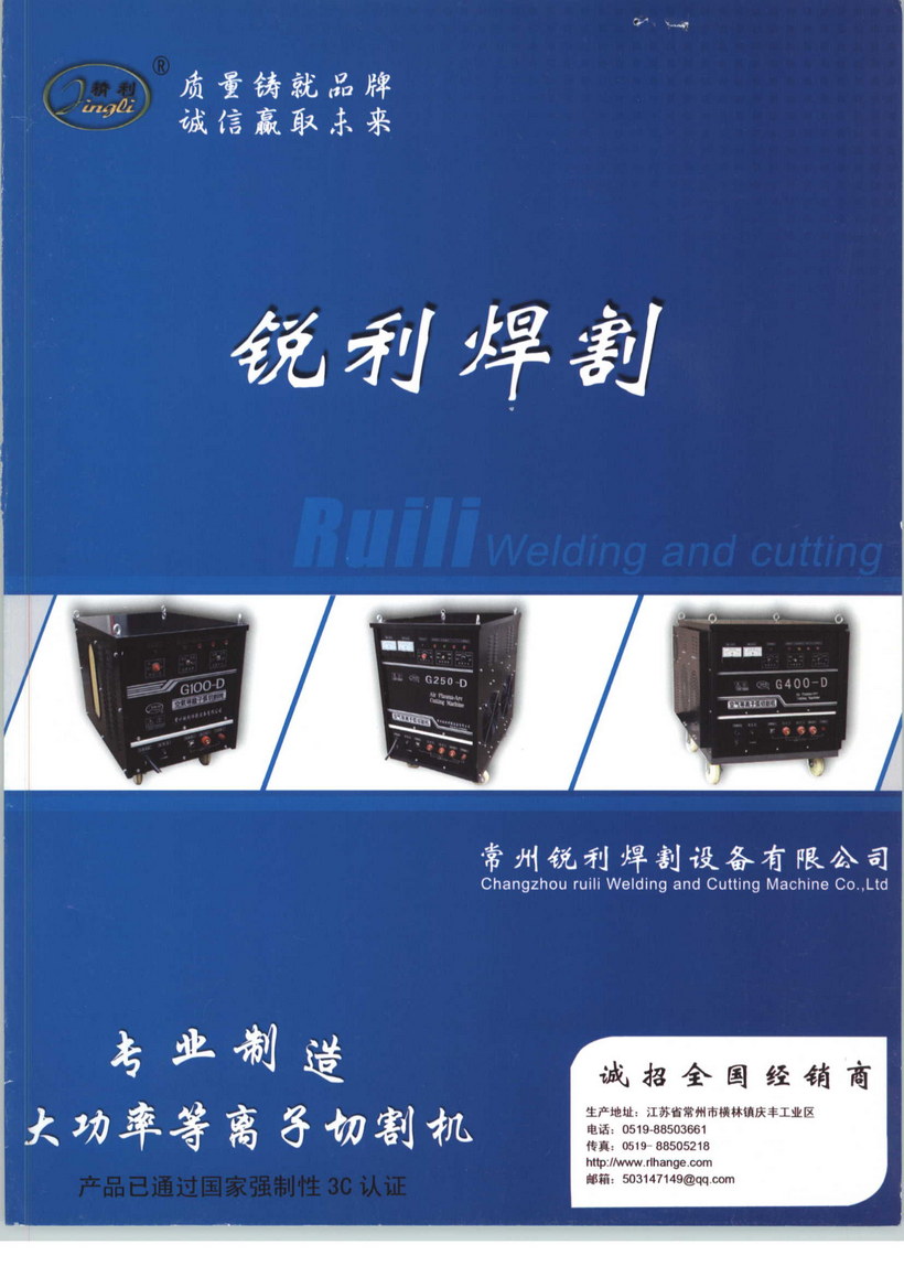 常州銳利焊割設備有限公司(原常州精藝焊割成套設備廠),位于滬寧高速和沿江高速交匯處。歷經十年的努力與發展現已成為國內等離子切割機制造企業中的佼佼者,其產品質量與服務均得到了廣大用戶的肯定與信賴。公司是具有雄厚的制造能力及完善的檢測設備。產品工藝先進,性能優良,結構合理,造型新穎。所有產品通過國家權威機構強制性安全認證CCC。