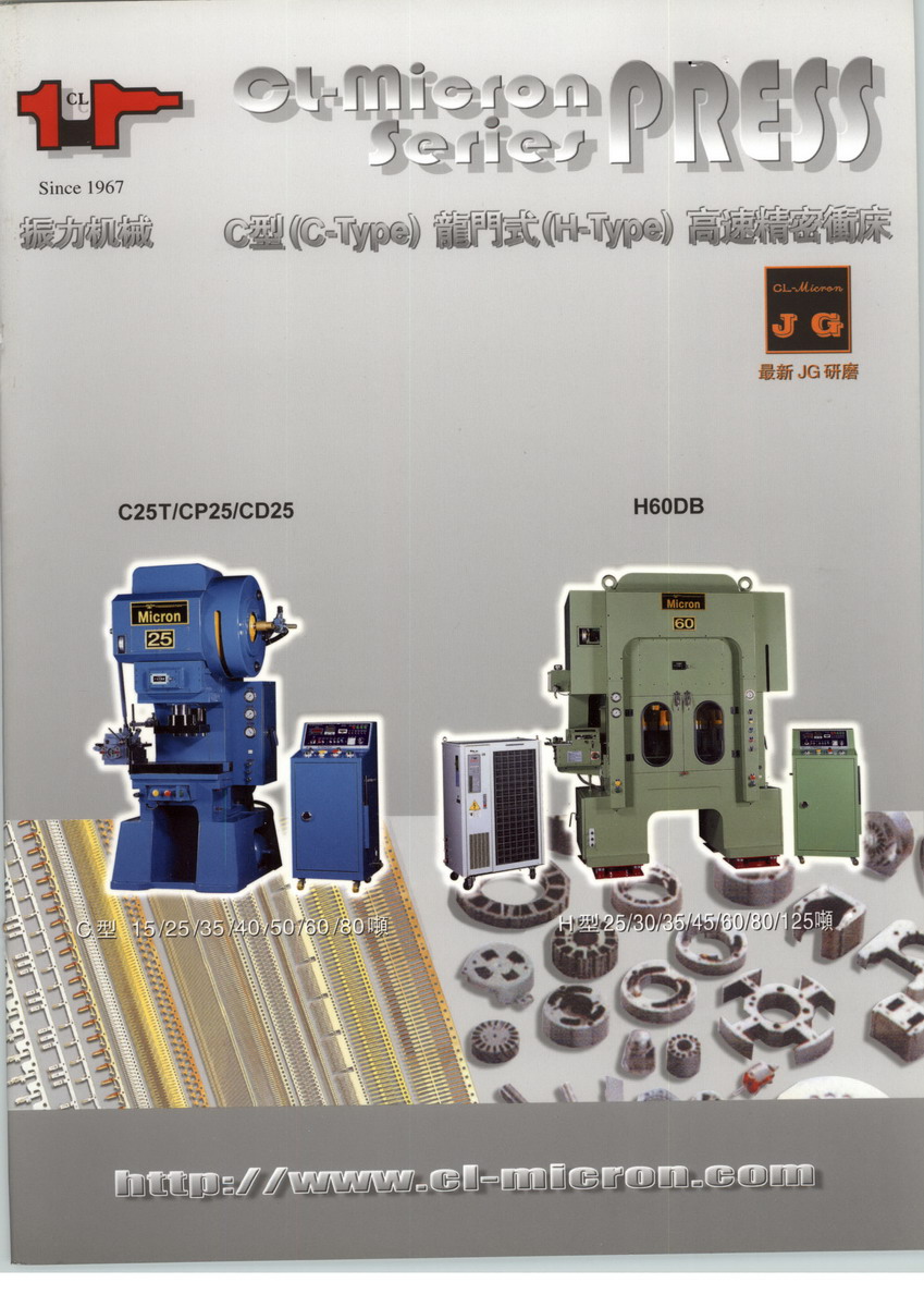 振力機械股份有限公司成立于1967年,專業生產高速精密沖床及夾式送料機 本公司高速沖床類型如下: 1、三圓導柱c型15t/25t/35t/40t/50t/60t/80t 2、龍門式四/八圓導柱式h型30t/35t/45t/60t/80t/125t 3、雙曲軸系列產品 我司產品已遠銷美、韓、南亞、東南亞等國家,國內已受到廣大客戶良好的評價和信任度。 為使顧客獲得更高的滿意度,我公司將繼續追求精益求精,提供最佳產品及高質量的服務,回報客戶。 公司簡介如下: 1967年 成立振力機械公司(前身)于臺北縣三重市/銷售沖床零件 1969年 開發第一部臥式肘節式沖床 1970年 銷售出口 第一條干電池鋅殼沖床生產線到印尼的abc公司 1975年 投資興建新莊廠/銷售臥式肘節式沖床超過150部 1976年 遷移到新莊廠 1987年 開發c型高速精密沖床/臺灣第一部三圓導柱式高速精密沖床 1989年 開發h型龍門式高速精密沖床 1991年 鴻海公司開始向本公司購買h型龍門式高速精密沖床 1993年 開發ip系列肘節式高速精密沖床/美國molex開始向本公司購買h型龍門式高速精密沖床 1993年 成立美國服務中心/新加坡半導體廠fine stamping購買高速精密沖床 1993年 開發夾式送料機gf90 1994年 興建龍潭二廠 1995年 開發c一type cd系列/振力高速精密沖床銷售超過2000臺/成立中國深圳服務中心 1996年 開發h一type龍門式db系列 1996年 日本山一電機(yamaichi)股票上市公司開始向本公司購買h型龍門式高速精密沖床 2001年 興建振力機械(昆山)有限公司 2001年 精英集團欽騰公司共向本公司購買超過140部各式高速精密沖床 2002年 tyco中國深圳公司開始向本公司購買龍門式沖床 2003年 成立溫州辦事處 2004年 美商安費諾開始向本公司購買龍門式沖床 2006年 引進高精密jg研磨床開建零組件/成立廈門及廣東中山服務中心 2007年 成立寧波服務中心/承建三期