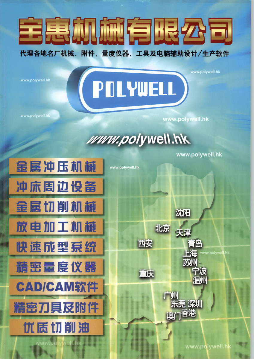 寶惠機械有限公司成立于一九九零年,主要代理機械業務。 為配合本地工業對高質素高精度機床產品的要求, 公司從世界各地引進各種精良電腦數控機械,包括模具設備 (如加工中心、火花機、線切割機、磨床等等)、鈑金設備 (激光切割機、液壓轉塔沖床、液壓彎板機等等)、車床設備 (車削中心 、傳統車床等等) 及特殊機械設備 (齒輪加工機、快速成型系統等等)。 八十年代中國開始實施經濟開放政策,為節省生產成本,越來越多的本地廠家北移及擴充規模,基于此種發展趨勢,公司在東莞設立維修服務中心,向客戶提供快捷的維修服務,現時維修服務部有員工超過150人(香港及國內),各服務工程師均經過嚴格訓練并分為不同組別,以保證專業服務的質素。 現今科技日新月異,機械行業亦向高科技精密產品發展。「寶惠」即時把握機會, 引入激光切割機、等離子切割機、鐳射雕刻機及快速成形系統等先進機械,令產品更加多元化。為掌握行業動向及最新生產技術,「寶惠」的資深工程師經常參觀國外之機械展覽會,以適時引進先進機械設備,保持與世界機械工業的同步發展。 「寶惠」之宗旨是向客戶提供一站式服務,除協助客戶選購高質素及合適之機械外,更向客戶提供有關配套設備 (包括機床附件、刀具系統、電腦軟件、售前及售后服務),其中先進科技部,專責為客戶提供電腦輔助設計軟件、立體激光掃描系統及三座標測量機等高科技產品以及相關專業訓練課程。 為滿足中國客戶對精密先進機械不斷增長之需求,「寶惠」分別在北京、上海、重慶、廣州、西安及瀋陽等國內重要城市設立辦事處,藉此向國內客戶介紹先進機械及協助客戶更新改造現有設備。 為向客戶介紹最新型機械及先進生產技術,公司每年必參加本地及國內十多個機械展覽,并于陳列室舉行的大型展銷會及研討會,提供客戶與制造商直接交流的機會,此外,公司按時舉辦先進機械考察團、在各種工業雜志及報紙刊登廣告、印制公司資訊,加強客戶對公司產品的了解和信心。 「寶惠」之目標是 “立志成為中國及香港機械行業最優質服務的提供者”。 公司將不斷引入先進技術及精密機械,提供優質完善服務,與時并進,與客戶共同發展。